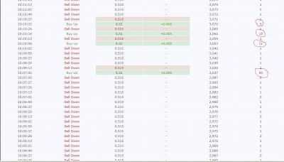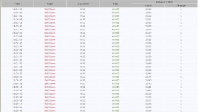 Coincidently I have a chance to catch an interesting trading session by some professional traders out there. I have been puzzled by why there are so many 1 lot selling out there every second and every minute for quite sometimes. I copied some transactions to illustrate my observations and tried to establish my own hypothesis. First of all, I don’t believe there are so many retail investors doing one lot transaction because the stock price has to move up by 5% to breakeven (to pay for the transaction commission). I was thinking that professional traders might try to test the support between $0.515 and $0.52 (200D MA at $0.52) before entering a big position by end of the day. I observed the trade every now and then to prove whether my hypothesis was right because this phenomenon was something very new and strange to me. From the early morning trade, there were one or two lots sold at $0.515. As soon as someone bought at $0.52 (50, 11, 10, 5), the stock price dropped back to $0.515 immediately (by 1 lot). Refer to Screen 1. Screen 2 showed all 1 lot transaction at $0.52 (about 10:30am) to check whether anyone was queuing at this price.