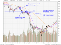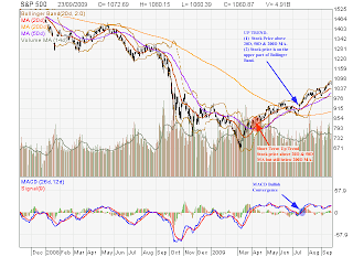When the stock in on the down trend. I check whether the stock price is below 20D, 50D and 200D MA line. I do not want to buy a stock which may go lower and lower. I also use other Technical Indicators (MA, MACD, Parabolic Stop and Reversal, Bollinger Band, RSI, Stochastic) to confirm my analysis. Below is stock chart for S&P500, I show some Technical Indicators (MA, MACD and Bollinger Band) only on the charts otherwise the charts will be overcrowded when I include all six Technical Indicators. - When the stock breaks below a strong support line.